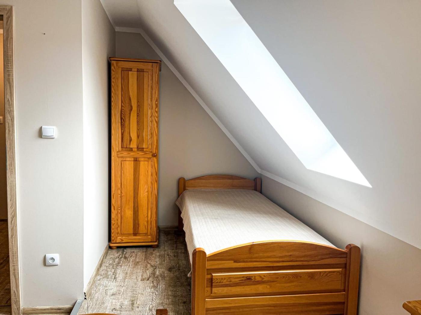 Pokój trzyosobowy. Guests will find a stovetop, a refrigerator, kitchenware and a toaster in the well-fitted kitchen. The triple room also provides guests with a barbecue. The triple room provides a dining area, a wardrobe, as well as a private bathroom featuring a shower and a hairdryer. The unit offers 2 beds. Pokój Trzyosobowy - 3 osobowy. Powierzchnia pokoju ok.: 20 mkw. ;