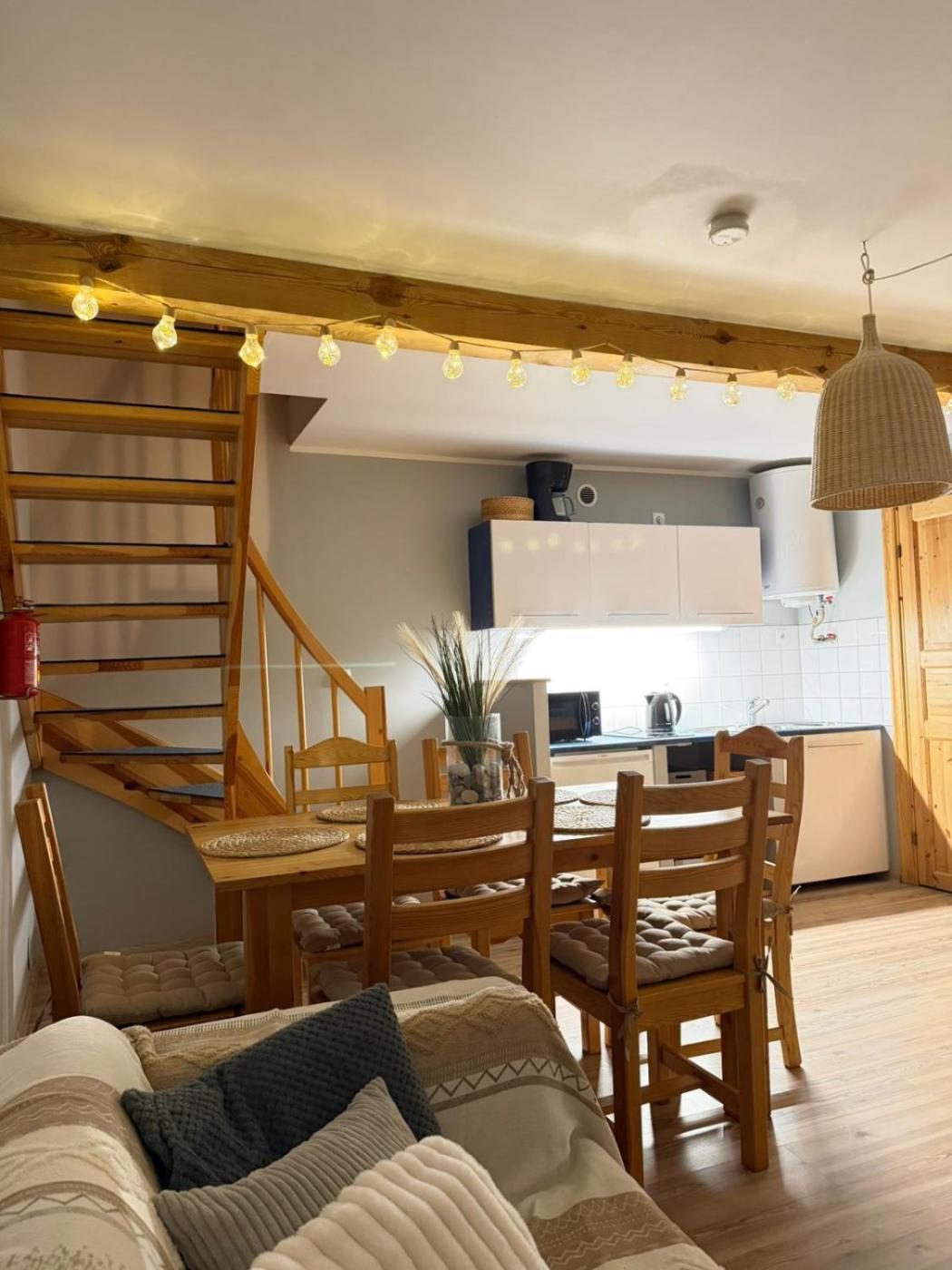 Dom z 2 sypialniami. Boasting a private entrance, this holiday home comes with 1 living room, 2 separate bedrooms and 1 bathroom with a walk-in shower. Guests will find a stovetop, a refrigerator, kitchenware and a toaster in the well-fitted kitchenette. The holiday home also includes a barbecue. This holiday home has a tea and coffee maker, a seating area, a flat-screen TV with satellite channels and a terrace. The unit has 6 beds. Dom wakacyjny - 6 osobowy. Powierzchnia pokoju ok.: 55 mkw.