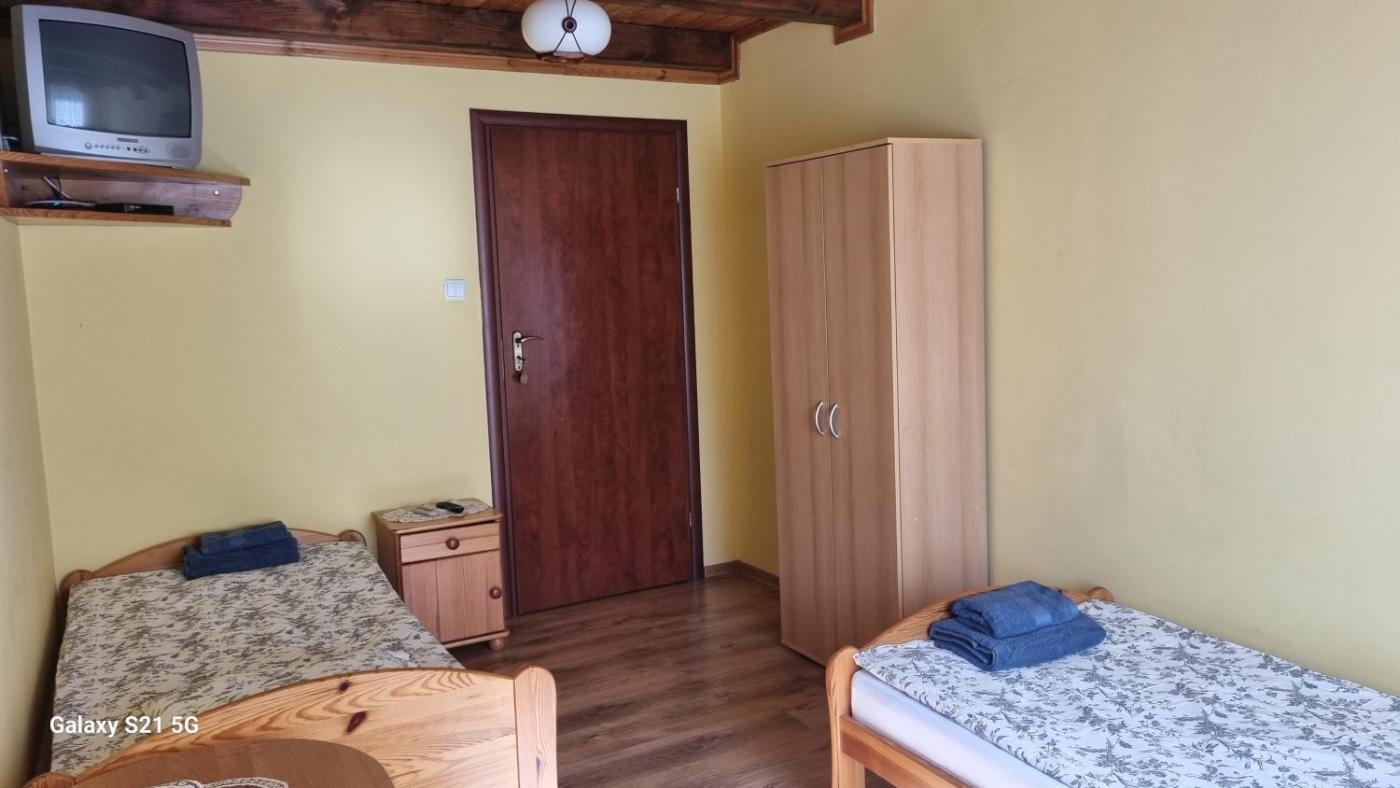 Pokój trzyosobowy. The triple room features a wardrobe and heating, as well as a private bathroom boasting a shower. The unit has 3 beds. Pokój Trzyosobowy - 3 osobowy. Powierzchnia pokoju ok.: 25 mkw. ;