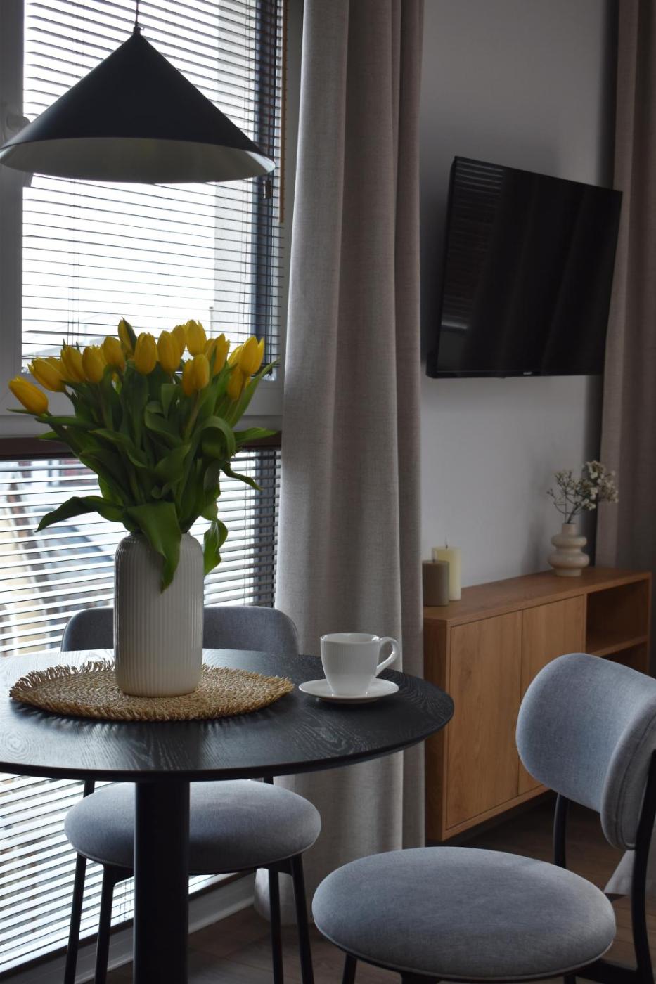 Apartament z 1 sypialnią. The air-conditioned apartment features 1 bedroom and 1 bathroom with a shower and a hairdryer. In the well-fitted kitchen, guests will find a stovetop, a refrigerator, a dishwasher and kitchenware. This wheelchair accessible apartment has a tea and coffee maker, a seating area with a flat-screen TV and a roll-in shower. The unit offers 1 bed. Apartament - 2 osobowy. Powierzchnia pokoju ok.: 27 mkw.